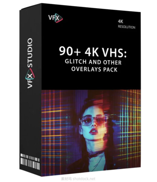 90多个4k电影效果胶片颗粒感、灰尘划痕、粗糙视频过渡叠加层素材-VFX Studio-VHS: Glitch and Other Overlays Pack